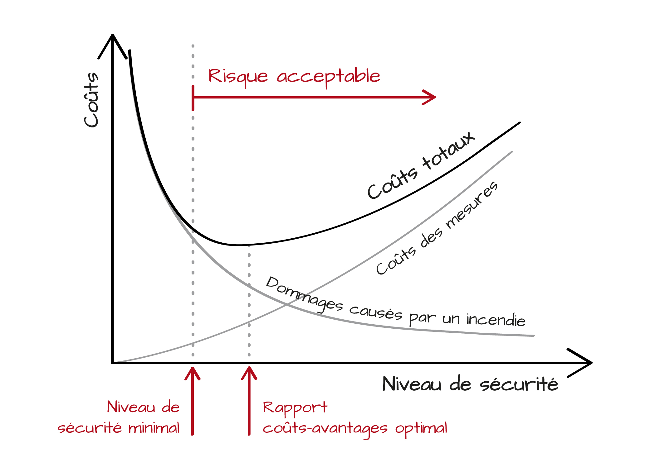 Cette méthode consiste à déterminer, à partir des risques, quels investissements dans la protection incendie s’avèrent judicieux d’un point de vue économique. L’objectif est d’atteindre un rapport optimal entre le niveau de sécurité et les coûts. La protection incendie donnant la priorité à la sécurité des personnes, elle exige toujours un niveau de sécurité minimal.
